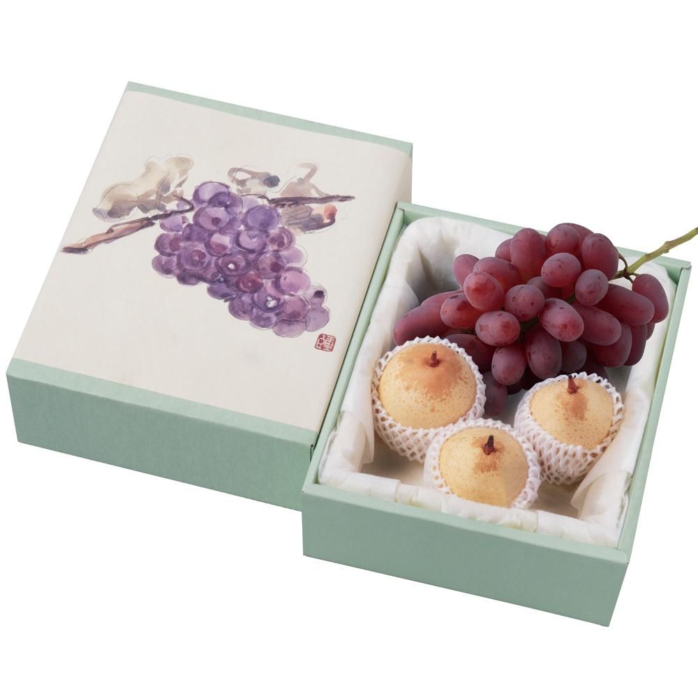 サクサクとした香り豊かな珍しい希少な梨と、好評の種なしぶどうの紫苑を詰合せにしました。