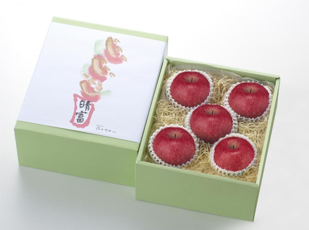晴富が厳選した『サンふじ』は、シャリッとした食感、口いっぱいに広がる濃厚な果汁、とろりとした甘みのハーモニーに自信あり。