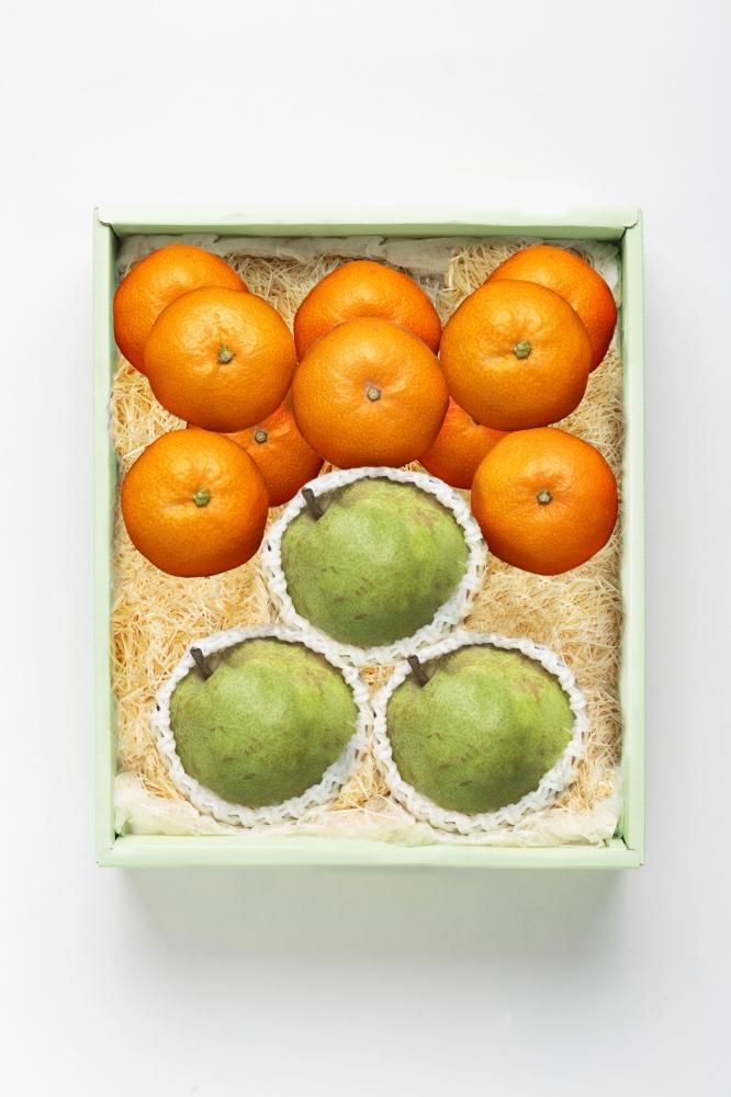 温州みかんと、芳醇な香りのラ・フランスを詰合せにしました。