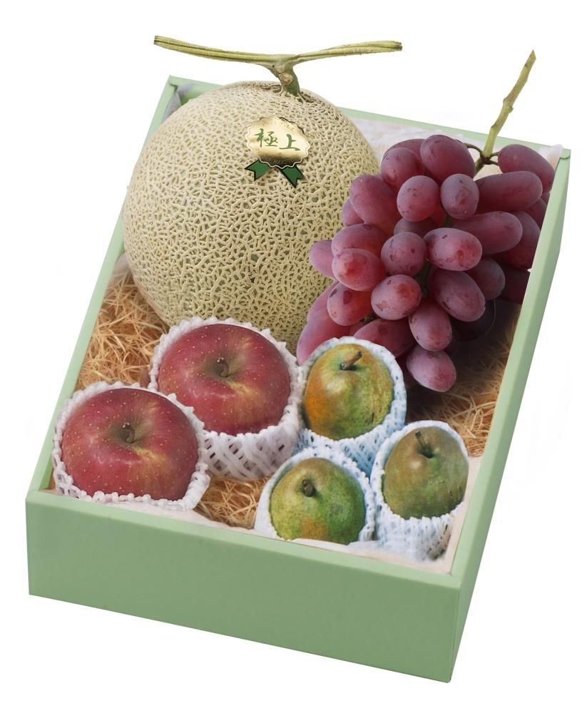アールスメロンを中心に、好評のサンふじ、ラ・フランス・紫苑を詰合せた豪華な果物詰め合わせです。