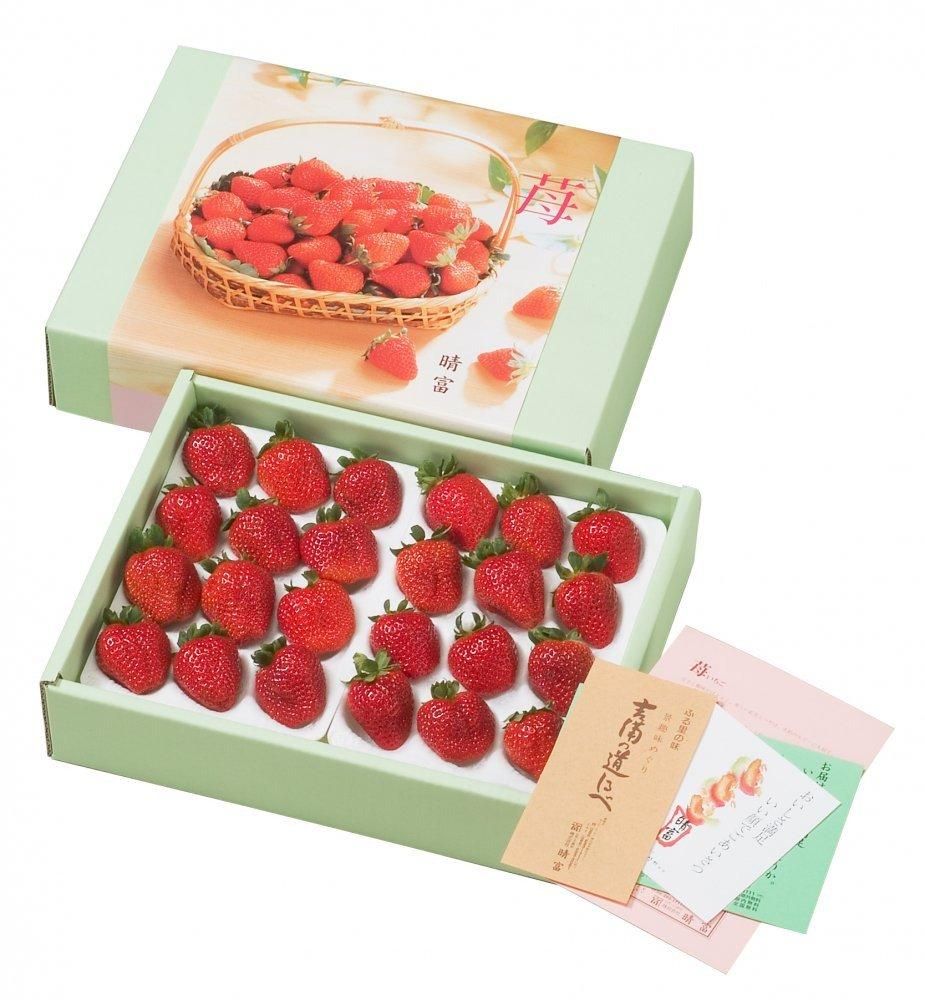 晴富では、最高品質の大粒苺を選り抜いて箱いっぱいに詰めました。